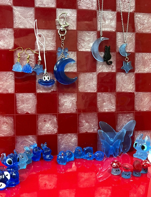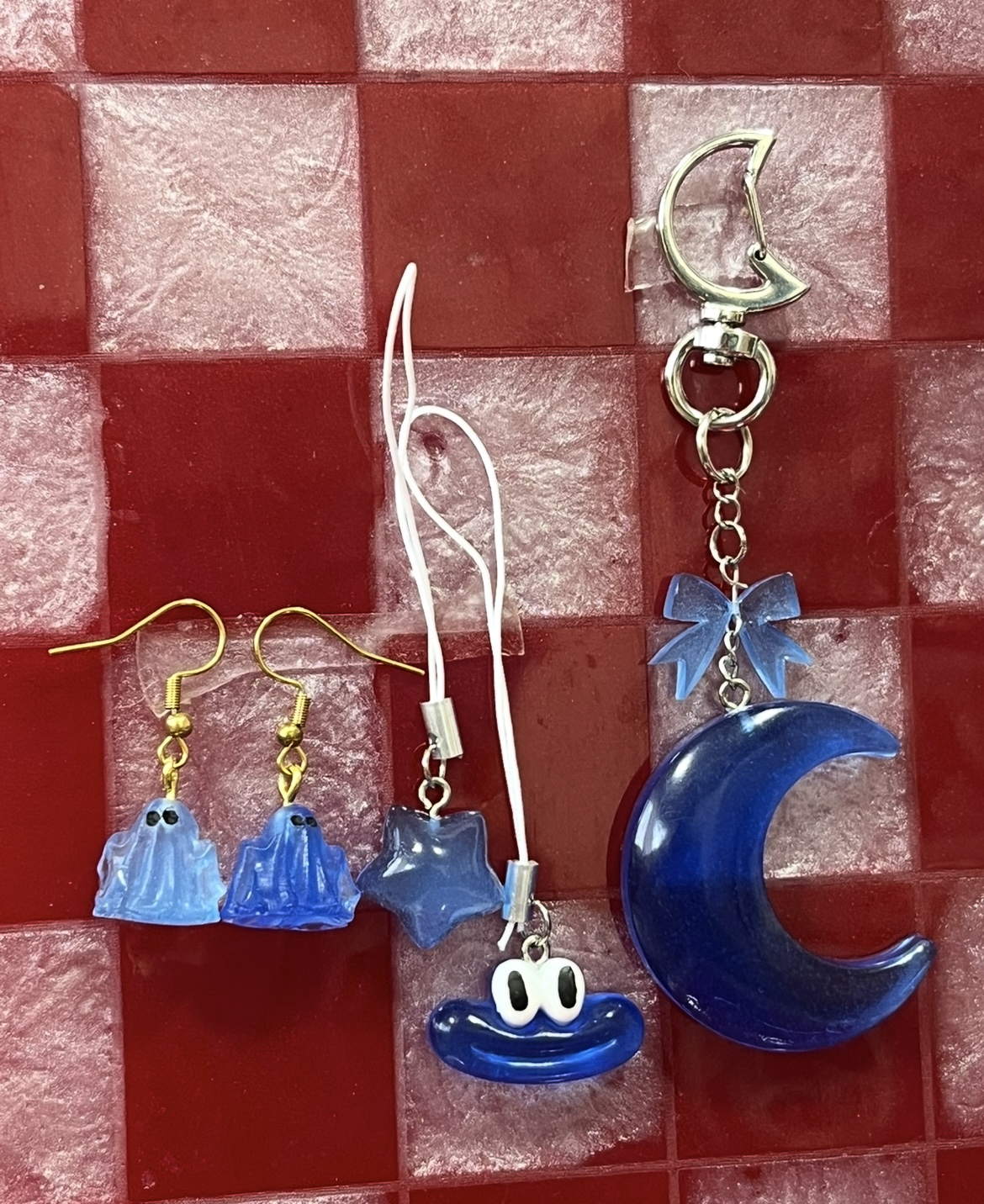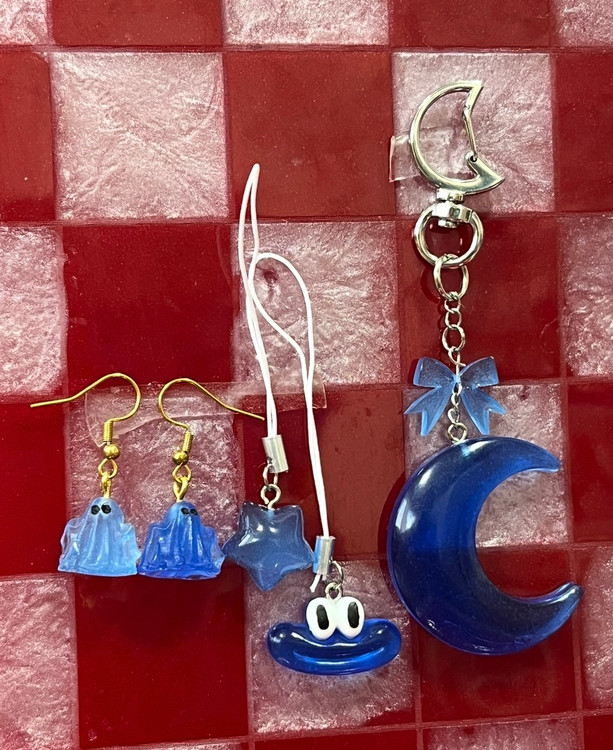 پک ده تایی شامل : ۱ گردبند گربه و ماه ، ۱ آویز خندان ، ۲ عدد قارچ اسمورفی ، ۲ عدد خرگوش ، ۲ عدد استیج ، ۱ آویز ماه ، ۱ ست گوشواره